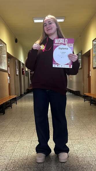 Z dumą ogłaszamy, że Martyna Helisz z klasy 1e sięgnęła po złoty medal i tytuł Mistrzyni Świata federacji WADF w kategorii hip hop – mini formacje!