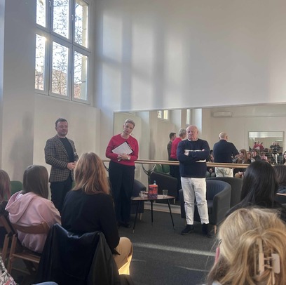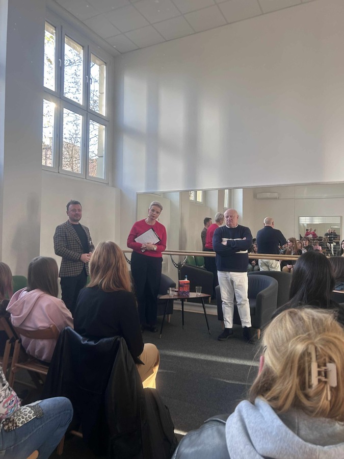 Spotkanie okazało się niezwykle ciekawe i inspirujące. Pisarz opowiadał o swojej drodze zawodowej – od pracy reportera śledczego po tworzenie powieści opartych na prawdziwych tajemnicach historii. Uczniowie mogli usłyszeć, skąd bierze pomysły, jak wygląda proces pracy nad książką i dlaczego „prawdziwe historie są najlepszym materiałem do opowiedzenia”.