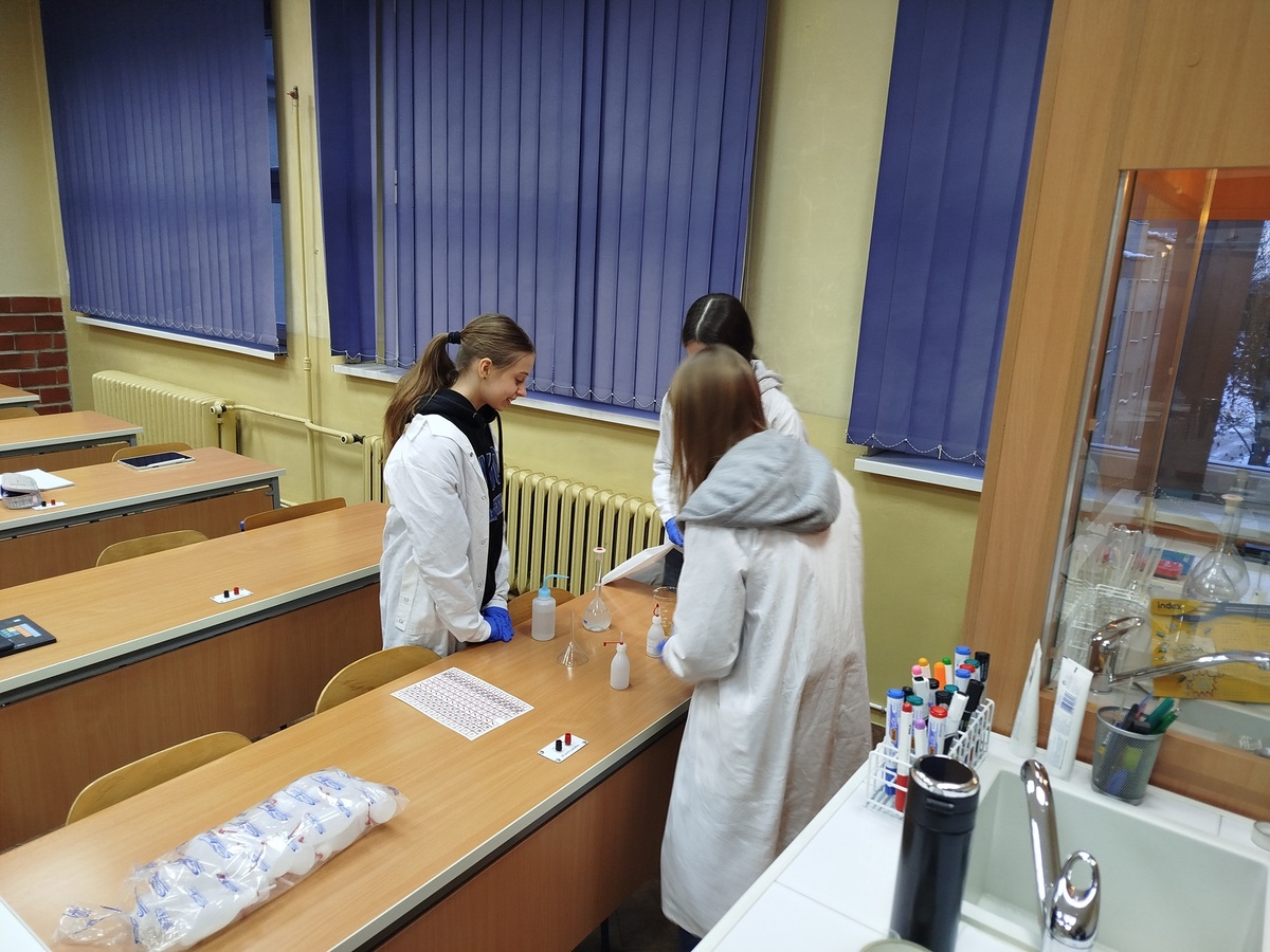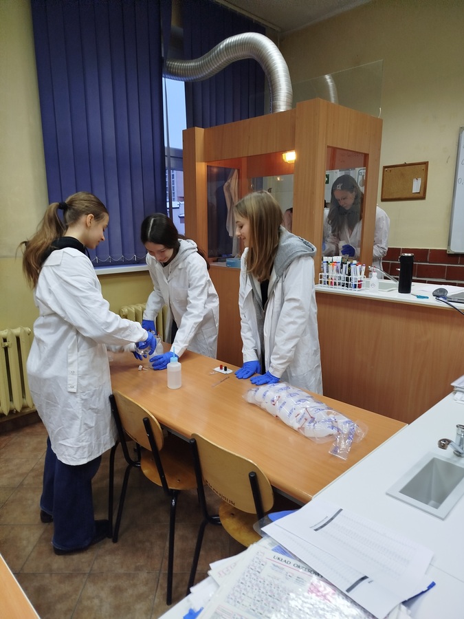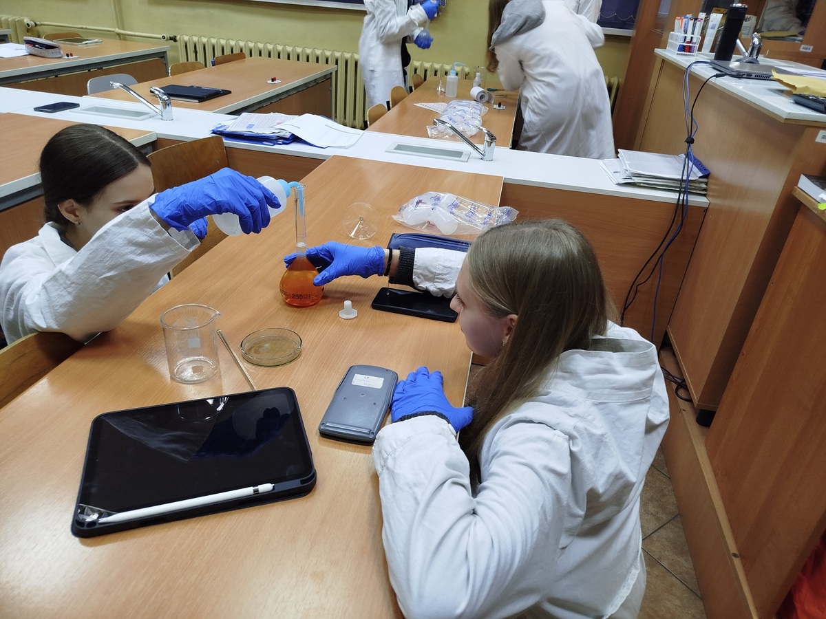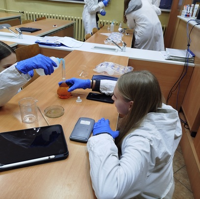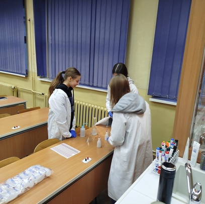 Klub Młodego Chemika 13.01.2026 Na zajęciach Klubu Młodego Chemika uczestnicy przygotowują roztwory, z których będą korzystać podczas wykonywania doświadczeń.