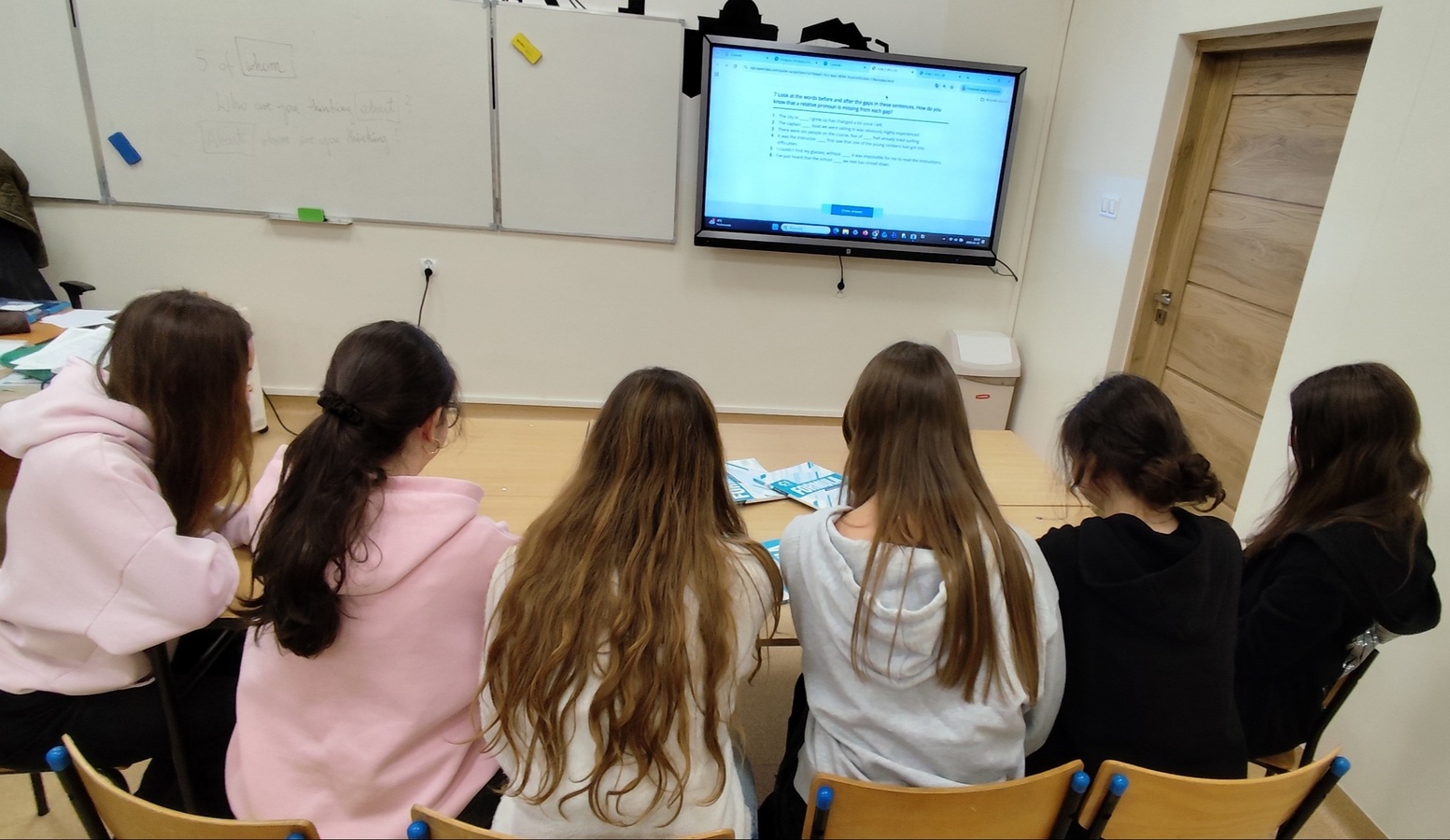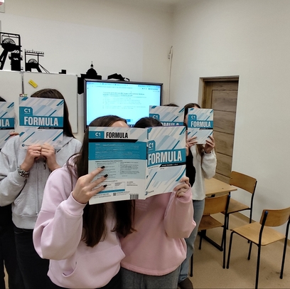 W poniedziałki grupa sześciu osób, prowadzona przez nauczycielkę Lucynę Pawłowską, dokłada wszelkich starań, żeby zmierzyć się z wymaganiami egzaminu CAE. Pracujemy nad środkami językowymi, rozwijamy czytanie i słuchanie ze zrozumieniem, uczymy się wyrażać nasze myśli w mowie i piśmie w ambitny, ale klarowny sposób.