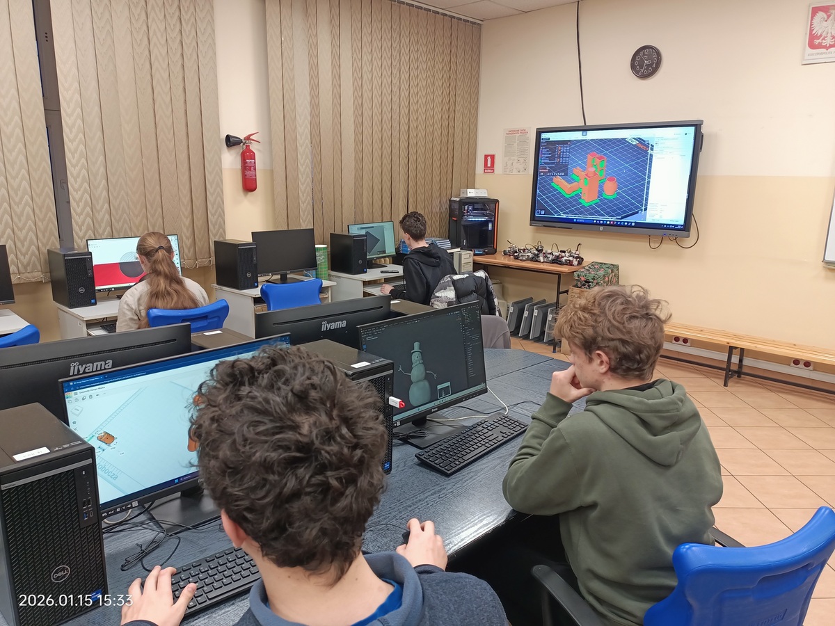 W ramach zajęć uczniowie poznają platformę TinkerCAD, program Blender oraz inne. Dzięki zakupionej drukarce 3D mogą realizować swoje projekty w fizycznej formie.