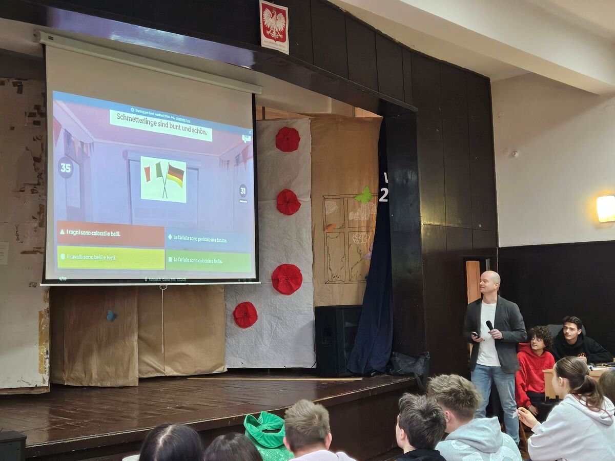 28 stycznia w naszej szkole odbył się Dzień Języków Obcych. Tego dnia zaproponowaliśmy uczniom wspólną zabawę oraz szlifowanie wymowy w językach: angielskim, włoskim, niemieckim i hiszpańskim. Uczniowie chętnie podjęli wyzwanie i zaprezentowali swoje umiejętności w tzw. „łamańcach językowych”. Zmierzyli się także z tłumaczeniowym Kahootem, w którym próbowaliśmy wyjść ze strefy komfortu i zgadnąć właściwe tłumaczenie prostych zdań, np. z języka hiszpańskiego na język niemiecki.